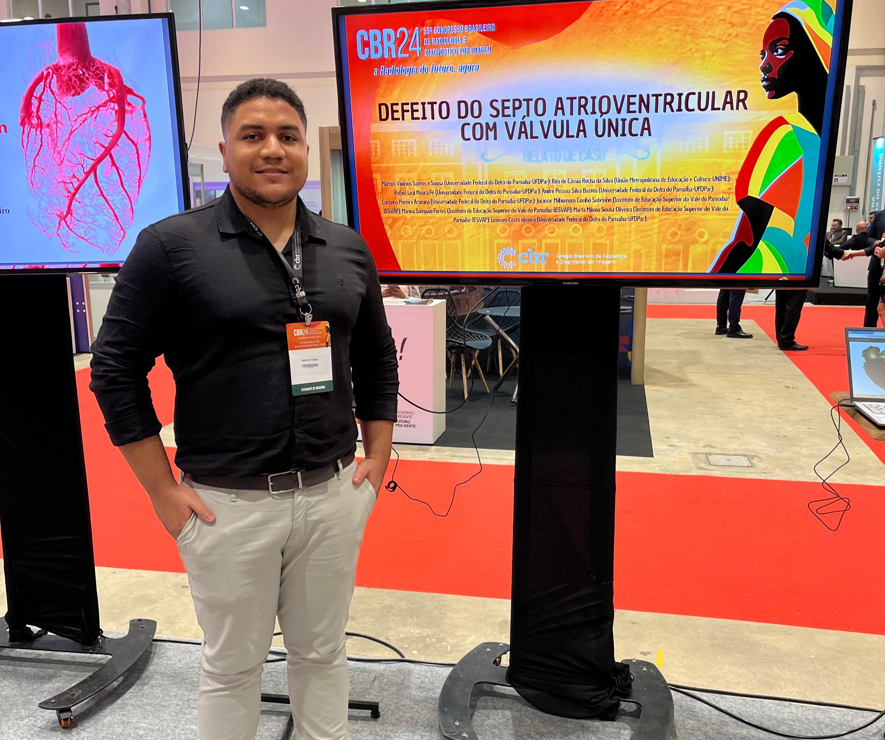 O segundo trabalho, "Defeito do Septo Atrioventricular com Válvula Única: Relato de Experiência", foi apresentado na categoria e-poster e baseou-se em imagens ultrassonográficas, sob a orientação do professor Dr. Leonam Costa.