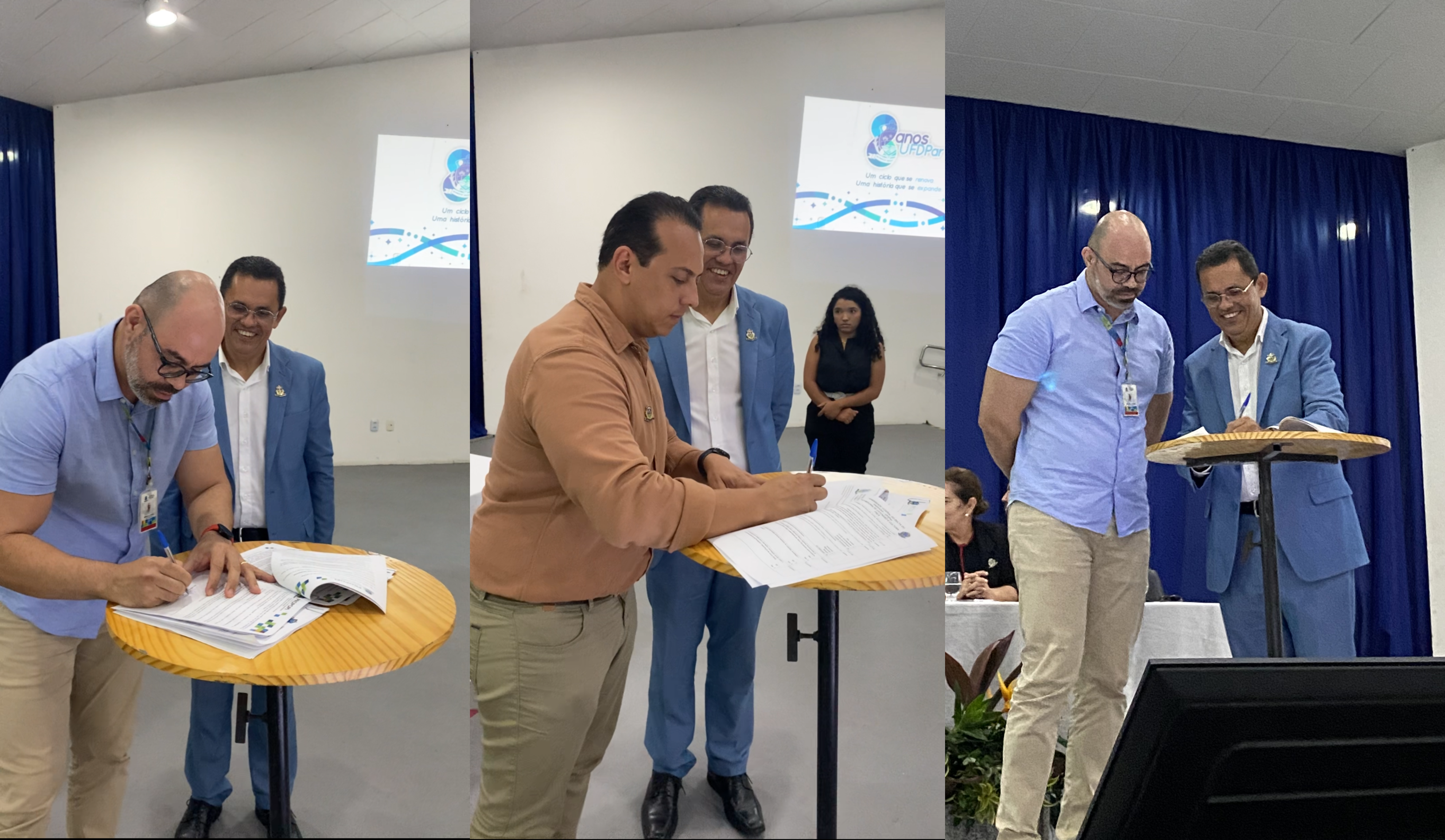 Durante a solenidade, foram assinados editais de incentivo à pesquisa, à extensão e à inovação, além de documentos relacionados à premiação de dissertações e teses, reafirmando o compromisso institucional com a produção de conhecimento e o desenvolvimento acadêmico.