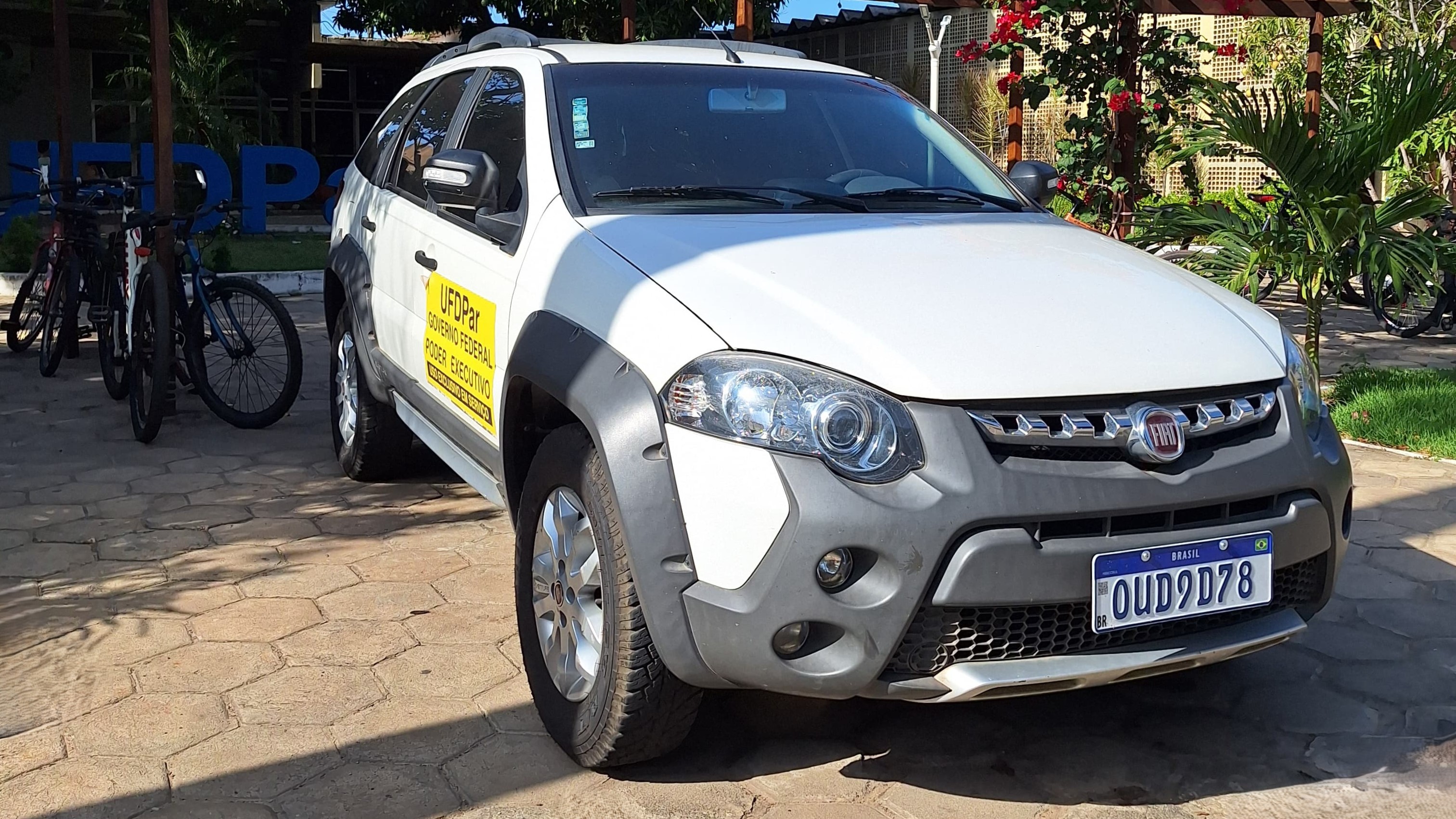 O primeiro veículo é um FIAT Pálio Weekend Adventure, ano 2012/2013, doado pela Procuradoria da Fazenda Nacional no Piauí (PFN/PI), através do Processo SEI nº 11910.000064/2024-40. O automóvel se destaca por sua versatilidade, atendendo a diversas demandas internas da universidade. Com um motor de 114 cv de potência, o veículo oferece estabilidade, amplo espaço interno e um porta-malas ideal para viagens de longa distância. Equipado com diversos recursos de conforto, já está em pleno uso, servindo diferentes setores da UFDPar.