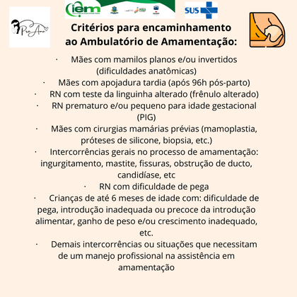 O projeto tem como objetivo promover o aleitamento materno e prestar assistência a casos de intercorrências como ingurgitamento mamário, mastite, dificuldades de pega, problemas no ganho de peso do bebê, entre outras situações comuns no período da amamentação.
