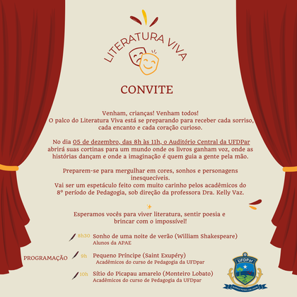 O “Literatura Viva” é aberto à comunidade acadêmica e ao público infantil, reforçando o compromisso da UFDPar com ações educativas, culturais e formativas.